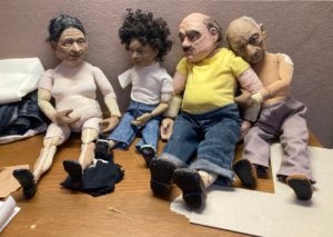 Un temps de création partagé avec nos quatre marionnettes réalisées par Alma Roccella. Le vieux Joseph, la tante Rosie, Omar-Jo et Maxime. Elles retournent bientôt dans l’atelier de construction. La prochaine fois que vous les verrez elles auront leur visage terminé et leurs petites chaussures !