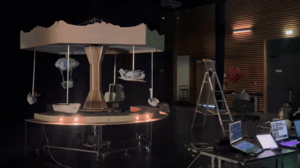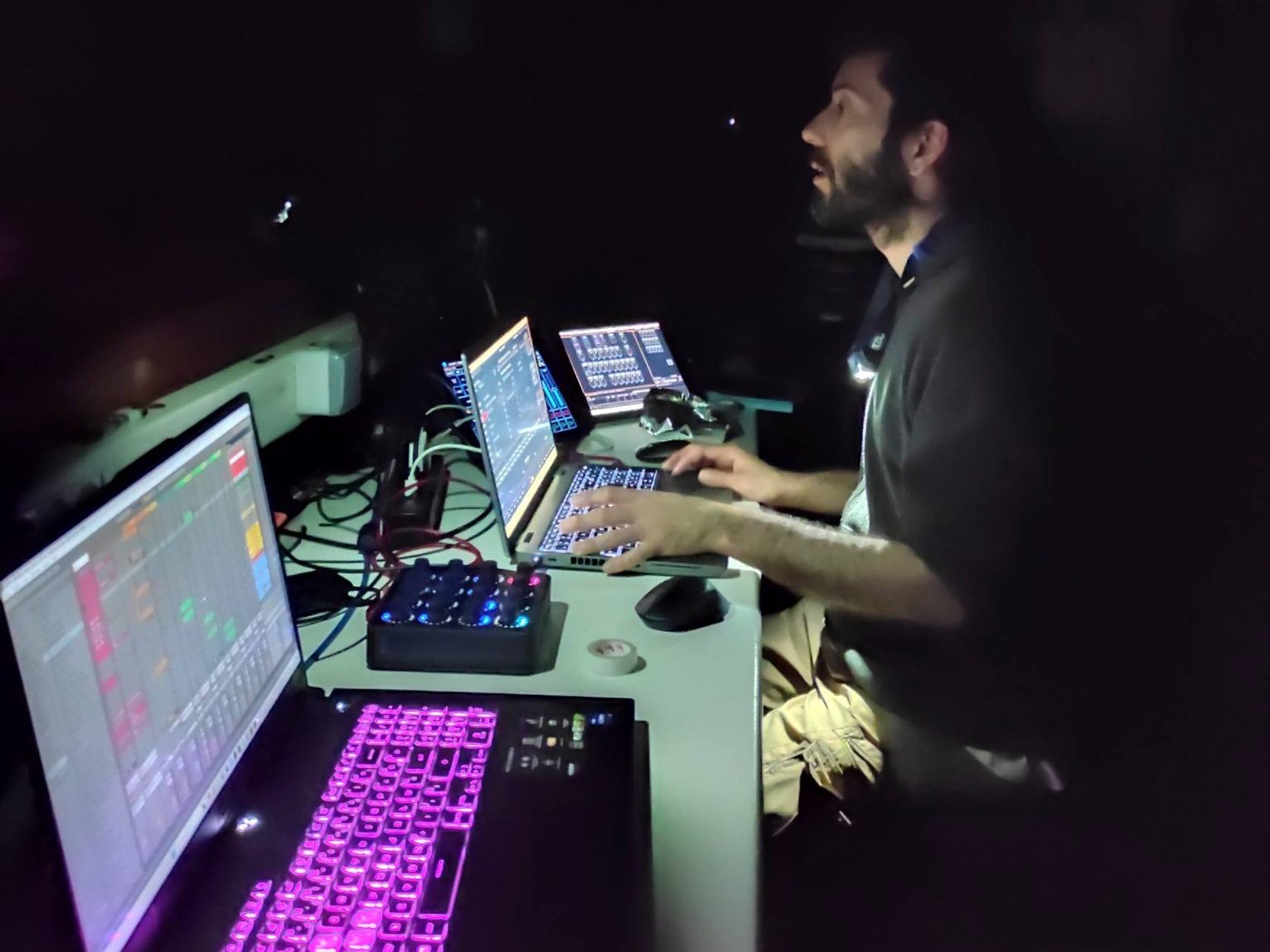 Kévin Villena, notre créateur lumière, a pu faire ses premiers tests en vue d’intégrer de la lumière dans le Manège, l’un des personnages principaux de notre histoire.