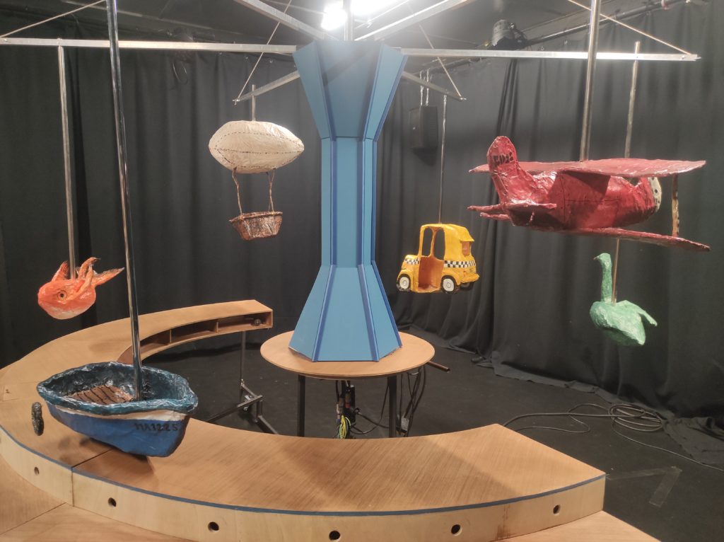 Benjamin Olinet, notre décorateur, repart de cette résidence avec tous les éléments pour se mettre à la construction du Manège. En attendant sa réalisation, nous continuerons de travailler cet été avec ce prototype fabriqué uniquement avec des matériaux de récupération.